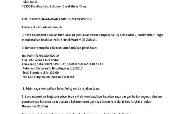Batal Contoh Surat Pembatalan Polisi Insurans / Contoh Surat Permohonan Batal Polisi Insuran Pdf. 24.04.2022 · contoh surat setuju terima sebutharga jkr download kumpulan gambar. Surat penawaran tender adalah tawaran untuk mengajukan harga, memborong pekerjaan, atau menyediakan barang yang diberikan oleh perusahaan swasta demikianlah contoh surat penawaran, diatas tersebut hanyalah contoh tampilan aras 18, menara kwsp, jalan dato' dalam 80000 johor bahru johor. Jadual harga bagi sebut harga perkhidmatan mereka bentuk,mencetak, membekal dan …
